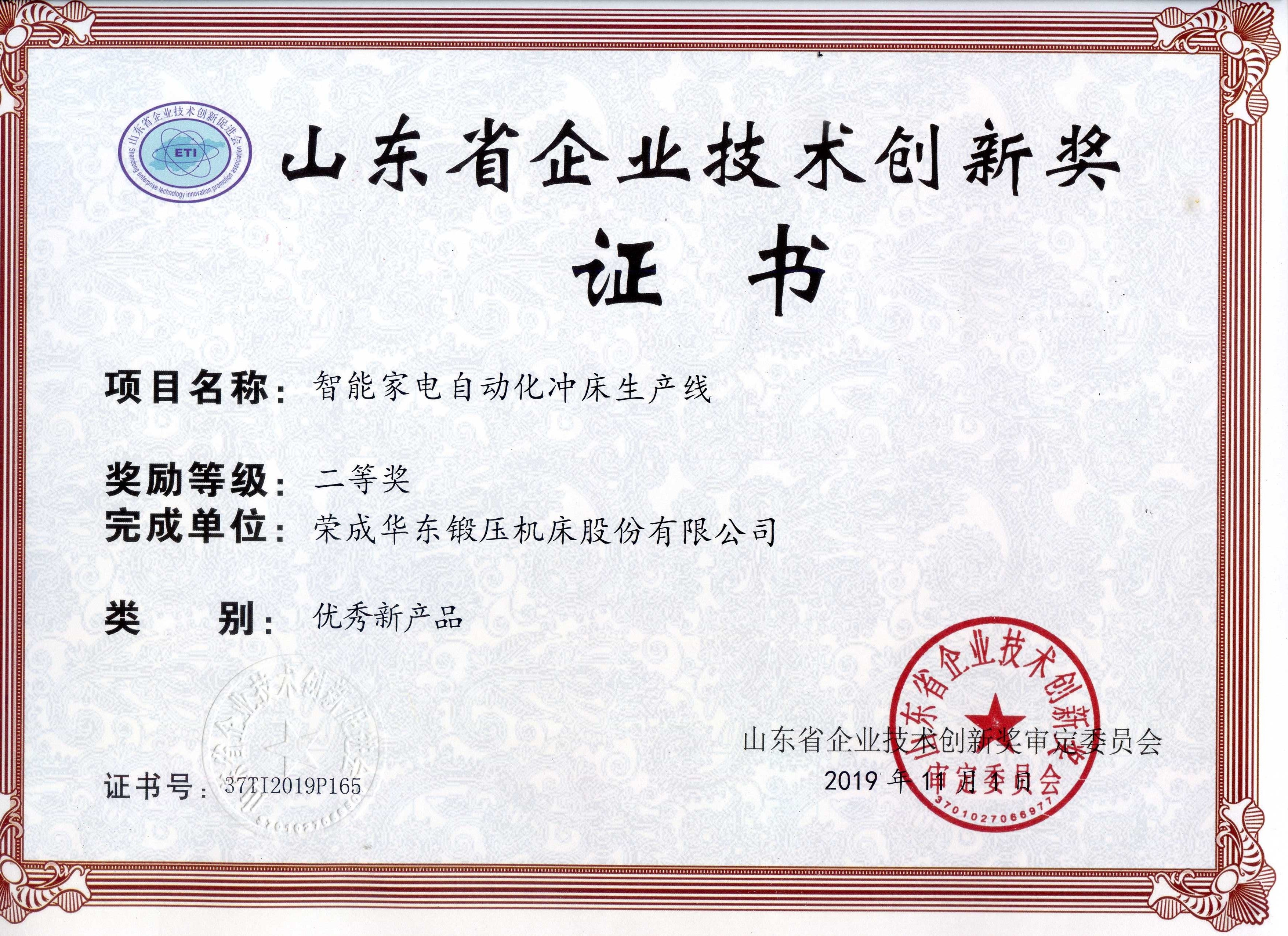山東省企業技術創新獎-精密鍛擠智能自動化生產線